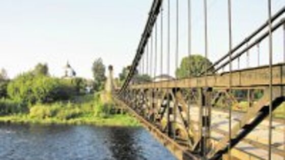 В Псковской области есть город Остров, невеликая река Великая и сразу два моста, каких нигде больше в России нет. Остров – очень старый город, который раньше и впрямь был островом – клочком суши посреди воды, где стояла крепость. Больше 400 лет она защищала Псков от соседей, ливонцев и поляков, пока победа в Северной войне не отодвинула границы государства на запад. Остров из города военного превратился в купеческий, благо расположен был удобно. Дороги разбегались во все стороны, по ним возили выращенный в тех местах лен, ездил на запад и обратно разный люд, в том числе монаршие особы. И так получалось, что дороги были, река Великая – тоже, а моста через нее – нет. Зимой народ переправлялся по льду, а летом – на паромах. Каждый царь, который проезжал через Остров, грузился на такой паром вместе с каретой и плыл с левого берега на правый (или обратно). Пока одному из них не надоело. Рассказывают, что Николай I, прибыв в очередной раз в Остров, не смог переправиться через реку никаким из существующих на тот момент способов – начался ледоход. Император тогда, говорят, в сердцах сказал: «Дождусь ли я, что в городе построят мост?!» Мосты задумали строить в 1837 году, а начали – только через 14 лет. Река Великая оказалась с характером, и проекты один за другим признавались либо неосуществимыми, либо очень дорогими. В конце концов архитектор Михаил Краснопольский в кратчайшие сроки создал совершенно уникальный проект цепных мостов, который устроил всех – экспертов-инженеров, государственную казну и, главное, реку Великую. Рекордным был и срок исполнения: всего 2 года! Из записок самого Краснопольского, который составлял подробнейшие отчеты о каждой потраченной копейке, известно, какими силами подняли эту стройку: например, за три месяца до открытия на мостах работали 50 плотников, 200 рабочих, 8 каменщиков, 134 каменотеса, 12 кузнецов, 19 слесарей, 12 маляров, 3 столяра, 31 мостовщик, 7 дерноукладчиков. В конце сентября 1853 года Николай I снова проезжал через Остров и на этот раз перешел реку пешком. Визит был внезапным, объекты даже не успели покрасить. Тем не менее императору все понравилось, и он, как сообщает городская летопись, «несколько раз изволил повторить, что мосты красивы и очень хороши». 160 лет прошло с тех пор, а мосты все еще хороши. Они выглядят практически так же, как в XIX веке, и, как ни странно, в веке XXI кажутся самым значительным и монументальным, что есть в городе Острове. Вы сами можете убедиться в этом, если окажетесь в тех краях. Других таких мостов в России больше нет. Как добраться Удобнее всего включить Остров в автопутешествие по Псковской области или в Прибалтику (отсюда примерно 40 км до границы с Латвией, около 70 – с Эстонией). Через город ходят поезда между Петербургом, Ригой и Вильнюсом, добраться можно автобусами из Пскова, Витебска, Курска, Смоленска и пр. Доступ на старые мосты открыт круглые сутки. Вне пешеходных дорожек нужно быть внимательными, особенно с детьми: «пол» кое-где прохудился. Кстати, деревянным покрытие мостов было всегда, даже когда по ним ходил транспорт. Интересно, что навигаторы до сих пор «видят» эти мосты как проезжие – периодически тут случаются ЧП с водителями, которые пытаются на них заехать. Что посмотреть в Островеи поблизости Никольская церковь. Храм, который появился на острове в XVI веке, необычен тем, что пост