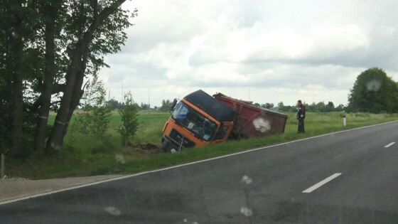 На трассе «Талпаки — Советск» в кювете лежит песковоз