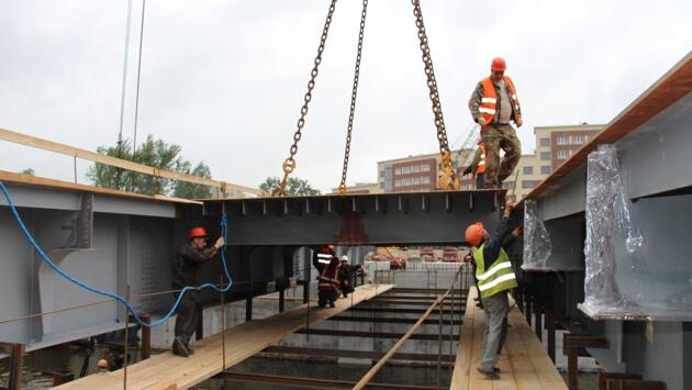 На объект доставлены детали многотонной металлической пластины, которым предстоит стать основанием будущей проезжей части моста. Строители приступили к их креплению к уже смонтированным несущим балкам. Об этом сообщает пресс-служба городской администрации. На мостовые опоры должно быть уложено 4 балки: из них 2 балки по 20 тонн и 2 – по 25 тонн. Укладываются балки параллельно. Между ними в каждом пролете монтируется по 3 многотонных квадратных плиты. Всего с берега до берега нужно уложить 9 таких плит, которые и сформируют ортотропную плиту, иными словами – основание для проезжей части моста. Как рассказал Сергей Штерц, прораб компании-подрядчика, металлоконструкции изготавливались в городе Санкт-Петербурге: «Оттуда их везли в течение месяца, доставка производилась частями. Потом на месте была укрупнительная сборка этих конструкций. Каждый из 9 квадратов состоит из двух частей, которые монтируются воедино на земле на специальных подмостках». Чтобы конструкция вдруг не уехала с моста, ее надежно прикручивают к несущим балкам высокопрочными болтами. Только для монтажа плиты мостовики заказали 2,5 тонны металлических крепежей. Когда болты с завода приходят на стройку их еще необходимо отмыть от консервирующей смазки. И для этого здесь работает специально обученный человек – болтовар. Процесс отмывания болтов довольно трудоемкий. «Содержимое деревянных ящиков засыпаем в чан с каустической содой и фактически доводим до кипения. Замеряем воду градусником, после чего промываем в этом же растворе и достаем болты с помощью этой самодельной штуки», – рассказал монтажник Олег Писаренко, продемонстрировав специальное устройство. После того, как ортотропная плита займет свое место на балках, ее очистят пескоструйкой и обработают специальным многокомпонентным антикоррозийным составом. Артур Крупин председатель Комитета архитектуры и строительства: «Нанесут 3 слоя по 80 микрон. Первые два слоя – грунтовка, из них второй слой цинковый, который впитывается в металл на молекулярном уровне. Третий финишный слой – это двухкомпонентный полиуриетановый состав, который тоже имеет высокую атгезию, то есть дает хорошую сцепку с металлом. По сравнению с эпоксидными составами, которые ложатся, как пленка, имеющая свойство иногда отслаиваться, полиуриетановые имеют более высокую атгезию. То есть после того, как после нанесения состава на пролетные строения произойдут химические процессы (цинк обменяется молекулами с молекулами железа) мы получим практически единую конструкцию». Финишный слой будет наноситься, когда орторопная плита будет уложена, все полностью смонтировано, болты закручены, сварочные работы завершены. Для этого будет использоваться специальный аппарат, который под давлением нанесет состав на заранее подготовленную, очищенную поверхность: на ней не должно быть ни жиринки, ни пылинки. Тогда мост будет защищен от коррозии на долгие годы. Сверху на ортотропную плиту нанесут бетонное покрытие и несколько слоев асфальта. Фото пресс-службы администрации Калининграда