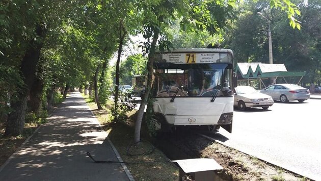 АСТАНА, 30 июн – Sputnik. Автобус врезался в дерево в Алматы, пострадал один человек, сообщили Sputnik Казахстан очевидцы происшествия. ДТП произошло на проспекте Суюнбая, не доезжая улицы Шолохова. Со слов водителя автобуса № 17, он двигался по Суюнбая в северном направлении, когда его якобы подрезала неизвестная иномарка. Для избежания столкновения он вывернул вправо и влетел в дерево. В аварии пострадала беременная женщина, ее увезли в больницу. Дальнейшим выяснением обстоятельств занимается полиция города. В пятницу полицейские города провели встречу с руководством автопарков Алматы, выразив им претензии за участившиеся происшествия с участием общественного транспорта на дорогах южной столицы.