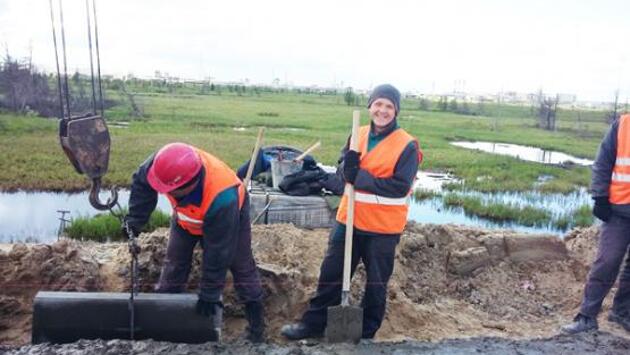 Бригада из восьми человек занимается укладкой асфальта. Каждый из восьми человек тщательно выполняет свою работу: двое песочат асфальтобетонную смесь, другие работают лопатой, а кто-то стоит у пульта управления серьезной техникой. Аккуратно разбрасывая асфальт, дорожники миллиметр за миллиметром, продвигаются вперед, внимательно отслеживая ровность поверхности, чтобы все соответствовало требованиям государственного стандарта. Это один из участков, на которых кипит работа по строительству дороги Надым – Салехард. Лето – самая горячая пора для дорожников общества «Уренгойдорстрой», им необходимо к первому декабря ввести в эксплуатацию новые 24 километра долгожданной трассы. – Дорога от Надыма до Салехарда протяженностью 330 километров состоит из шести участков, – рассказывает Эдуард Носань, начальник Надымского филиала ГКУ «Дорожная инспекция ЯНАО». – Два из них длиною в 90 километров со стороны столицы уже благополучно введены в строй в полном комплексном объеме. На остальных же ведутся работы по асфальтированию, устройству водосбросов и укреплению откосов. Для того, чтобы успеть захватить погожие деньки, на работы выпущено 230 единиц техники, 70 из которых работают непосредственно только на этом участке. – Сюда же входит и железнодорожный транспорт, водный, которые сейчас доставляют инертные материалы, битум и вообще огромный объем необходимых составляющих для полноценного дорожного строительства, – отмечает Дмитрий Туковский, главный инженер «УДС». – Только за сутки по асфальтобетону мы выходим до 700 метров укладки основания нижнего слоя, и всё в одну смену. С 5 июля дорожники планируют уже перейти на верхнюю «одежду» участка, заверяя, что в два раза ускорятся, доведя проходку до одного километра 300 метров в сутки. – Нам бы погоду ловить, ведь именно она для нас и друг, и враг, – говорит Дмитрий Владимирович. – В дождь работать не можем, соблюдая необходимые технологии по строительству. Обязательно мониторим состав покрытия, отслеживая инновационные достижения. Сейчас пока используем свои, проверенные составы с добавлением минпорошка, который дает неплохие результаты, но находимся в поиске, чтобы добиться высокого качественного уровня. Самым сложным процессом, по словам строителей дорог, является укладка нижнего слоя асфальтобетона и коммуникационные сети. – Потому что от качества щебеночного основания зависит ровность дороги, которую мы получаем «на выходе», – говорит Туковский. – Здесь, рядом с Надымом, пролегают различные «нитки» газопроводов, водоотводов, канализации, которые приходится пересекать. На документальные согласования уходит много времени… Но несмотря на бюрократические проволочки, дорожники четко следуют всем инструкциям, выполняя работу. На втором участке, где идут подготовительные работы перед закладкой асфальта, трудится немало студентов. Им в основном дают работу вспомогательную, чтобы изначально усвоили нелегкий труд рядового труженика. Вадима Меньшикова такое положение не пугает. Студент третьего курса Омского филиала Сибирского Государственного автомобильно-дорожного университета в будущем намерен стать инженером-строителем нефтегазовой техники. – Отсыпка не мой профиль, – смеется парень. – Но меня это не пугает, понимаю, что всё может пригодиться в жизни. Опыт приобрел от