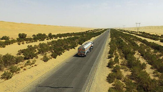 Корла /СУАР/, 10 июля /Синьхуа/ -- Построенное в 1995 году Таримское пустынное шоссе пересекло с юга на север пустыню Такла-Макан и стало на данный момент самым протяженным автомобильным шоссе в мире, проложенным через подвижную пустыню. В 2005 году здесь закончилось обустройство защитной лесополосы: по обе стороны Таримского шоссе была возведена "великая зеленая стена" длиной 436 км и шириной свыше 70 м из более чем 20 млн саженцев различных деревьев. Лесополоса не только обеспечивает бесперебойное движение транспорта по автодороге, но и, подобно зеленому островку, украшает и оживляет мертвое море песка. (Синьхуа/ Шэнь Хун) Корла /СУАР/, 10 июля /Синьхуа/ -- Построенное в 1995 году Таримское пустынное шоссе пересекло с юга на север пустыню Такла-Макан и стало на данный момент самым протяженным автомобильным шоссе в мире, проложенным через подвижную пустыню. В 2005 году здесь закончилось обустройство защитной лесополосы: по обе стороны Таримского шоссе была возведена "великая зеленая стена" длиной 436 км и шириной свыше 70 м из более чем 20 млн саженцев различных деревьев. Лесополоса не только обеспечивает бесперебойное движение транспорта по автодороге, но и, подобно зеленому островку, украшает и оживляет мертвое море песка. (Синьхуа/ Шэнь Хун) Корла /СУАР/, 10 июля /Синьхуа/ -- Построенное в 1995 году Таримское пустынное шоссе пересекло с юга на север пустыню Такла-Макан и стало на данный момент самым протяженным автомобильным шоссе в мире, проложенным через подвижную пустыню. В 2005 году здесь закончилось обустройство защитной лесополосы: по обе стороны Таримского шоссе была возведена "великая зеленая стена" длиной 436 км и шириной свыше 70 м из более чем 20 млн саженцев различных деревьев. Лесополоса не только обеспечивает бесперебойное движение транспорта по автодороге, но и, подобно зеленому островку, украшает и оживляет мертвое море песка. (Синьхуа/ Шэнь Хун) Корла /СУАР/, 10 июля /Синьхуа/ -- Построенное в 1995 году Таримское пустынное шоссе пересекло с юга на север пустыню Такла-Макан и стало на данный момент самым протяженным автомобильным шоссе в мире, проложенным через подвижную пустыню. В 2005 году здесь закончилось обустройство защитной лесополосы: по обе стороны Таримского шоссе была возведена "великая зеленая стена" длиной 436 км и шириной свыше 70 м из более чем 20 млн саженцев различных деревьев. Лесополоса не только обеспечивает бесперебойное движение транспорта по автодороге, но и, подобно зеленому островку, украшает и оживляет мертвое море песка. (Синьхуа/ Шэнь Хун) Корла /СУАР/, 10 июля /Синьхуа/ -- Построенное в 1995 году Таримское пустынное шоссе пересекло с юга на север пустыню Такла-Макан и стало на данный момент самым протяженным автомобильным шоссе в мире, проложенным через подвижную пустыню. В 2005 году здесь закончилось обустройство защитной лесополосы: по обе стороны Таримского шоссе была возведена "великая зеленая стена" длиной 436 км и шириной свыше 70 м из более чем 20 млн саженцев различных деревьев. Лесополоса не только обеспечивает бесперебойное движение транспорта по автодороге, но и, подобно зеленому островку, украшает и оживляет мертвое море песка. (Синьхуа/ Шэнь Хун) Корла /СУАР/, 10 июля /Синьхуа/ -- Построенное в 1995 году Таримское пустынное шоссе пересекло с юга на север пустыню Такла-Макан и стало на данный момент самым протяженным автомоб
