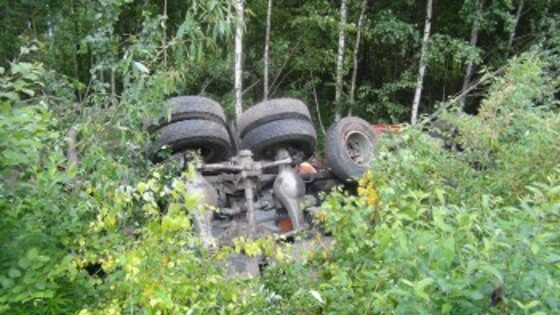 В Белозерском районе грузовик КАМАЗ вылетел в кювет из-за лопнувшего колеса