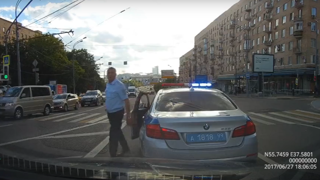 Столичного сотрудника ГИБДД привлекли к административной ответственности за опасные маневры на дороге. Конфликт между водителем легковушки и инспектором на BMW с выключенным спецсигналом произошел 29 июня на Смоленской улице в Москве. На опубликованном в Сети видео видно, что гаишник резко, не включив поворотник и проблесковый маячок, пытается перестроиться, опасно подрезая едущий в соседней полосе автомобиль. Эта попытка не увенчалась успехом, и инспектор, уверенный в своей правоте, решает "проучить" не пропустившего его водителя. Дорожные разборки перерастают в словесную перепалку, в ходе которой сотрудник ДПС уверяет, что водитель должен был его пропустить, так как это была помеха справа. Водитель гражданского автомобиля, в свою очередь, вежливо парирует, отмечая, что он двигался в своей полосе, соблюдая разметку. Также он пригрозил агрессивному инспектору направить жалобу в МВД. Спустя несколько дней жалоба действительно поступила в ведомство. В ГУМВД Москвы отреагировали на обращение: сотрудник был привлечен к административной ответственности и оштрафован за нарушение ПДД. Как сообщает "Газета.ru ", в ходе дополнительной проверки оказалось, что он нарушил порядок ношения формы.