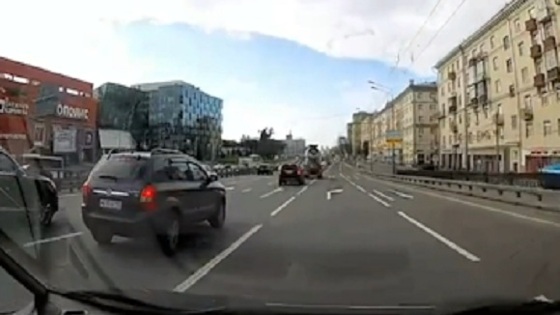 Авария произошла во вторник, 18 июля, 07:00 около на Ленинградском шоссе в районе ТЦ «Метрополис». Телеканал «360» публикует видео случившегося. На кадрах видно, что виновный в ДТП автомобиль ехал с высокой скоростью по полосе для общественного транспорта. Он задел авто, на регистратор которого попала авария, и вылетел на обочину и сбил дорожный знак. «Коллега был на разборе сегодня, у бабы 15 штрафов», — рассказал знакомый владельца регистратора. По предварительной информации, в аварии никто серьезно не пострадал.