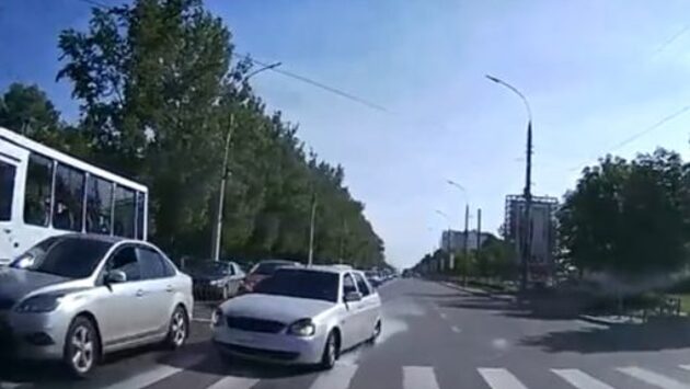 Видеорегистратор запечатлел «Приору», едва не устроившую массовое ДТП в Орле