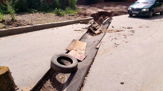 В Советском районе пролом появился во всю ширину проезжей части (ФОТО)