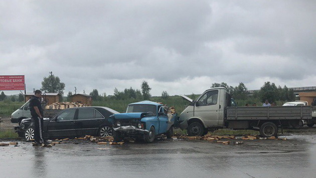 «Москвич» с дровами «размотало» между Mersedes-Benz и ГАЗелью