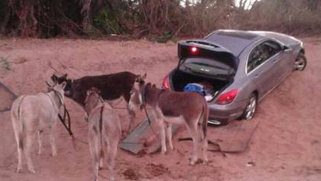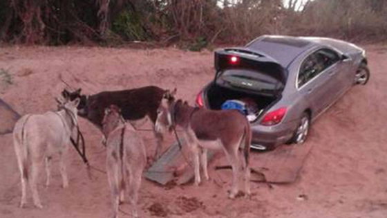 Полицейские в ЮАР предотвратили попытку контрабандистов перевезти украденный автомобиль Mercedes-Benz C220 в Зимбабве с помощью четырех ослов. Об этом сообщает новостной портал TimesLIVE. Сотрудники правоохранительных органов обнаружили машину, когда преступники перемещали ее через частично пересохшую реку Лимпопо, которая течет на границе двух стран. «Ослы тащили автомобиль через реку. Наши сотрудники набросились на подозреваемых после того, как животные, по всей видимости, больше не могли ее двигать», — рассказал представитель местной полиции. Преступники бежали в сторону Зимбабве. Никого пока не арестовали. Ослы в результате инцидента, произошедшего 31 июля, не пострадали. Как пишет в среду, 2 августа, зимбабвийская газета The Herald, в Южно-Африканской Республике усилили борьбу c незаконной миграцией и контрабандой на границе. С учетом нового случая, за семь дней полицейские обнаружили уже пять машин, которые переправлялись в Зимбабве. В декабре прошлого года полиция также помешала угнанному в ЮАР автомобилю попасть в Зимбабве. Тогда контрабандисты тоже использовали ослов, чтобы пересечь Лимпопо. Частично погруженная в воду машина была замечена силовиками с вертолета. Увидев его, подозреваемые бросились бежать, оставив и авто, и животных.
