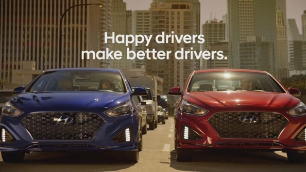 Совершенно иной креативный подход в контексте автомобильных пробок, чем в рекламе салонного фильтра, продемонстрировал Hyundai. В рекламном ролике звучит мелодичная песня, которую столь же радостно напевает водитель Hyundai Sonata. На плотное движение и унылые лица окружающих он не обращает никакого внимания, чем явно вызывает недоумение участников пробки. Делает музыку громче и встречает еще одного счастливого водителя, который, конечно же, находится за рулем Hyundai Sonata. Счастливые водители делают других водителей лучше, уверены в автоконцерне. Ролик создан американским подразделением агентства Innocean.
