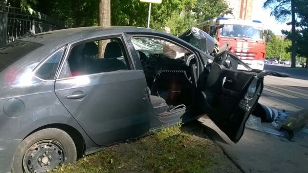 Иномарка на скорость 150 км/ч протаранила столб в Москве