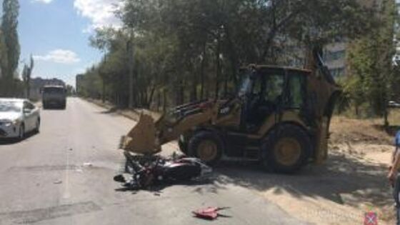 В Волгограде мотоциклист упал в ковш трактора