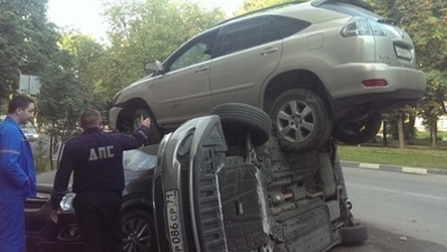 "Летающий Лексус" приземлился на два автомобиля в Туле
