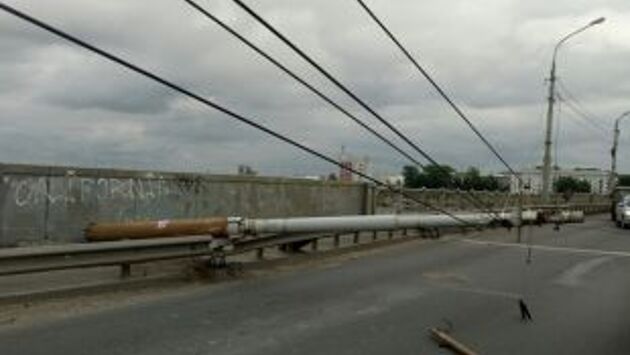На Кузнечевском мосту в Архангельске столб упал на проезжую часть
