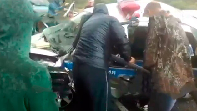 Лихач протаранил автомобиль ДПС на трассе в Кузбассе
