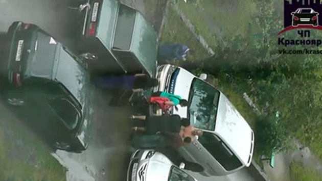 Мужчины пытались выяснить, кому принадлежит право объехать ее первым. Видео инцидента опубликовали на YouTube-канале kraschp 20 августа. Разнимали участников конфликта женщины. Один из автомобилей, судя по словам автора видео, был в составе свадебного кортежа. В потасовке приняли участие около десяти человек. Издание tvk6.ru сообщило, что в полицию поступили заявления от обеих сторон конфликта.
