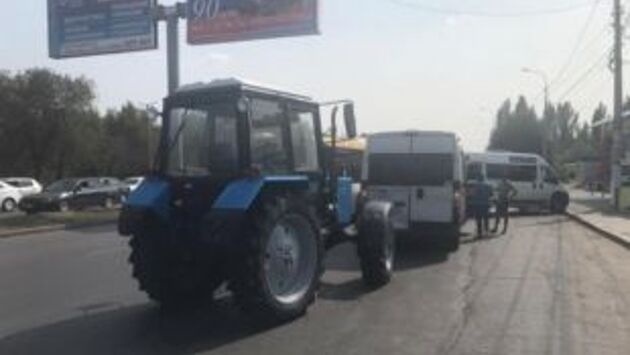 В Волгограде трактор протаранил маршрутку, пострадал 2-летний ребенок
