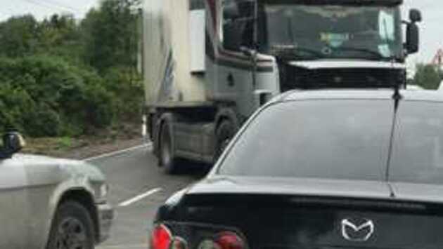ДТП с участием большегруза и легковушки перегородило Ропшинское шоссе