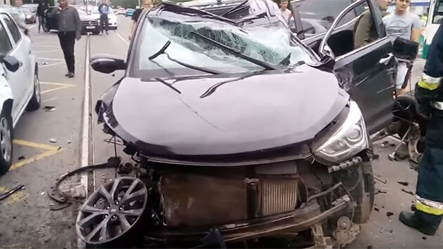 Иномарка виновника ДТП от столкновения с одной из машин буквально взлетела в воздух и приземлилась на крышу. Массовое ДТП произошло в Санкт-Петербурге на проспекте Энгельса столкнулись порядка десяти автомобилей. Видео массовой аварии опубликовали очевидцы. Виновником ДТП оказался 23-летний водитель иномарки Hyundai. Мужчина проигнорировал светофор, а затем на огромной скорости выехал на встречную полосу, протаранив несколько автомобилей. Иномарка виновника ДТП от столкновения с одной из машин буквально взлетела в воздух и приземлилась на крышу. Отмечается, что пострадали два человека виновник аварии и водитель одного из протараненных автомобилей.
