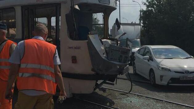 Краснодар. 29 авг. - Новая Кубань. Столкновение общественного транспорта и грузовика произошло на пересечении улиц Колхозной и Клинической. В социальных сетях опубликованы фотографии с места происшествия. Судя по снимкам, передняя часть трамвая серьезно пострадала, выбиты стекла окон. Инцидент прокомментировали в МУП «КТТУ». В пресс-службе компании сообщили, что столкнулись КамАЗ и трамвай, следующий по маршруту № 15. Из-за аварии простой в движении общественного транспорта составил час. Движение трамваев по этой ветке было возобновлено в 13:40. По предварительным данным, пострадавших нет. Сотрудники правоохранительных органов будут устанавливать виновника ДТП.