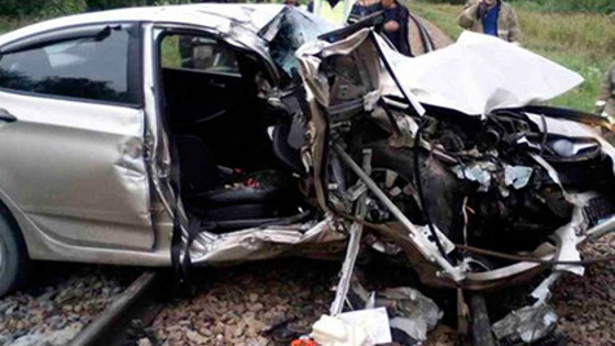 Тепловоз в Марий Эл снес на переезде легковой Hyundai