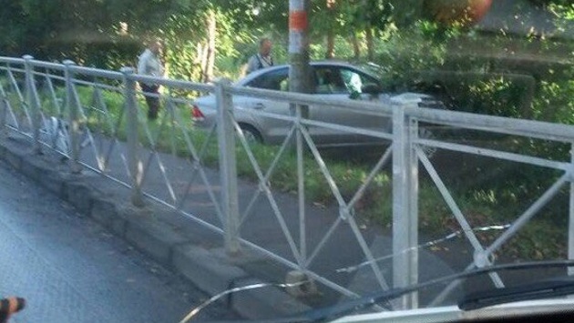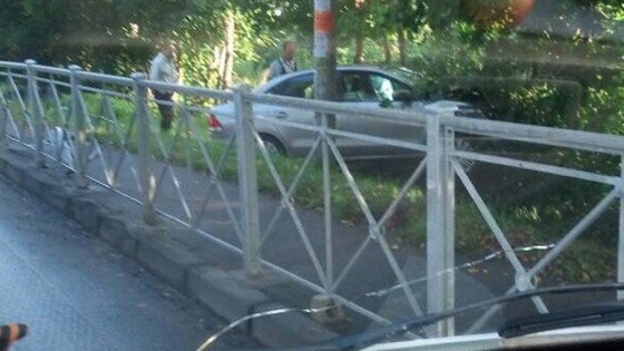 На ул.Дзержинского иномарка пробила ограждение и угодила в кювет