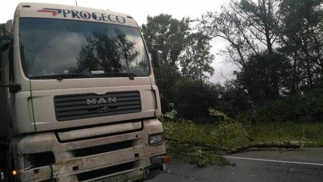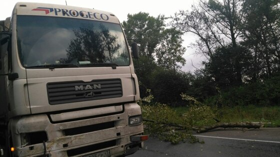 Гатчинское шоссе перегородило упавшее деревце