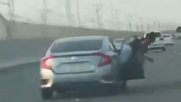 Выпавший: Очевидцы сняли на видео экстремальные игры на дороге жителя Саудовской Аравии
