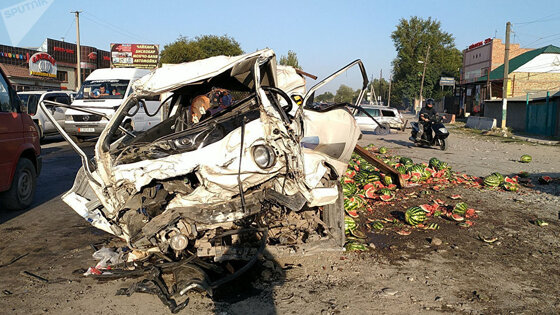 Грузовик выехал на встречку и врезался в "Портер" с арбузами — фото