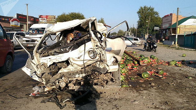 БИШКЕК, 17 сен — Sputnik. В Сокулуке произошла автоавария с участием трех машин, сообщает корреспондент Sputnik Кыргызстан с места событий. ДТП произошло примерно в 17.30 на пересечении улиц Фрунзе и Алматинской. Столкнулись грузовик, "портер" с арбузами и Ford. "По словам водителя грузовика, у него лопнуло колесо, поэтому его вытянуло на встречку. Там он столкнулся с "портером" и задел Ford. Двух человек из "портера" госпитализировали", — рассказал корреспондент. В Сокулукском РОВД информацию о ДТП подтвердили. На место выехала оперативная группа.