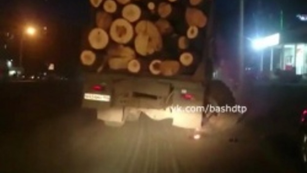 В Уфе у гружённого брёвнами грузовика на ходу оторвалось колесо