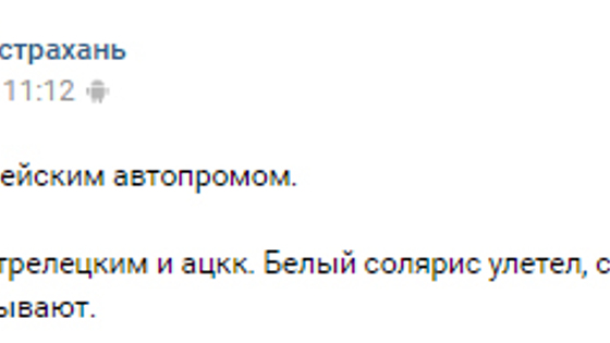 В Трусовском районе Астрахани произошло ДТП с участием двух легковых автомобилей. Сообщение о происшествии появилось региональном интернет-сообществе "Аварии Астрахань" социальной сети «Вконтакте». Как утверждают очевидцы, Темная машина совершила заезд на встречку, в результате чего произошло столкновение с белым Hyundai Solaris. На фото с места аварии видно, что из-за удара, предполагаемый виновник полностью смял переднюю часть, а корейский автомобиль вылетел с трассы, получив существенные повреждения. По предварительным данным, оба участника аварии остались живы и не пострадали. На данный момент точная причина и все факты случившегося устанавливаются сотрудниками дорожной полиции.
