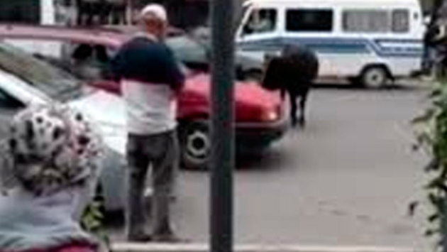 Корова, бегавшая по центру Бишкека, сбила с ног женщину. Пострадавшая была госпитализирована. Видеозапись происшествия во вторник, 3 октября, опубликовало ИА «Спутник-Кыргызстан». Инцидент произошел около 13:00 по местному времени (11:00 мск). Корова, бежавшая вдоль проезжей части, ударила женщину, переходившую дорогу. По словам снявшего эти кадры очевидца, пострадавшую увезли в Бишкекский научно-исследовательский центр травматологии и ортопедии. Он добавил, что животное было только что куплено и сбежало от хозяина при погрузке в фургон. При попытке догнать и изловить корову один из милиционеров также получил травмы. «Я пытался поймать корову на перекрестке улиц Тоголока Молдо и Киевской, но она сбила меня. Когда она побежала дальше, машина наехала на веревку, привязанную к ней. Я подбежал, и она лягнула меня», — рассказал он. Силовикам все же удалось задержать животное. О его дальнейшей судьбе информации нет.