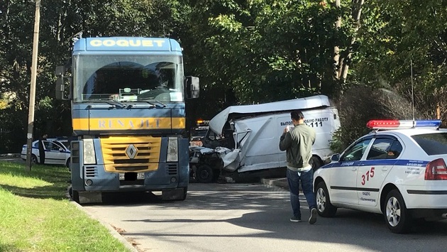 В пятницу, 6 октября, утром в Калининграде на пересечении проспекта Мира и улицы Штурвальной произошло серьезное ДТП. Там не поделили дорогу фура «Рено» и грузовой микроавтобус «Мерседес». Он угодил в угол рамы большегруза. В результате оказалась замят кабина «Мерседеса» с водительской стороны. Со слов очевидцев, мужчина, находившийся за рулем «микрика», чудом остался жив. Что касательно фуры, то она серьезно не пострадала. Фото: vk.com/dolf945