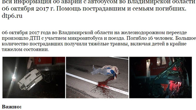 ТВ-МИГ продолжает рассказывать о мерах, которые принимаются в регионе для помощи пострадавшим в аварии на железнодорожном переезде у города Покров. В настоящее время открыты специальный сайт и группа помощи. Как говорят его организаторы: «Для обмена оперативной информацией по случаю аварии с автобусом во Владимирской области 06 октября 2017 г. была учреждена группа помощи и открыт сайт для обмена оперативной информацией dtp6.ru» Любой житель Владимирской области, да и всей России в целом может узнать о том, какая благотворительная помощь нужна пострадавшим и как помочь людям, чудом избежавшим страшной гибели. На сайте можно узнать, кто, в какой степени пострадал в аварии и где находится пострадавший: Акмердзоев Мерсид – 1997 г. р. (в тяжелом состоянии в ОДКБ города Владимира); Налстарьев Байдула – 1981 г. р. (легкие травмы, был в Петушках, отпущен после осмотра); Латипов Мердтай – 1994 г. р. (в крайне тяжелом состоянии остался в Петушках); Виедулаева Гульрух – 2012 г. р. (в тяжелом состоянии в реанимации в ОДКБ города Владимира); Тангрикулов Довлатбек – 2015 г. р. (в крайне тяжелом состоянии в ОДКБ города Владимира); Тангрикулов Машраб – 1989 г. р. (отец Довлатбека) Еще здесь можно увидеть хронологию событий, а также то, в чем нуждаются пострадавшие.