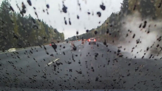 Фонтан гудрона вырвался из спецавтомобиля и накрыл проезжающие мимо машины. Инцидент попал на камеру видеорегистратора. На трассе Екатеринбург-Челябинск из спецавтомобиля вырвался фонтан гудрона в тот момент, когда мимо проезжал поток машин. В результате инцидента не менее 40 транспортных средств подверглись мощнейшему напору битума. Об этом сообщает сайт Комсомольская Правда . Распылитель был поднят вверх, поэтому напор гудрона бил фонтаном и обливал всех, кто ехал в направлении Челябинска. Фонтан был такой силы, что заливал по крышу даже крупные грузовики. Водители сразу останавливались, так как продолжать движение дальше было невозможно , - рассказал один из очевидцев. Отмечается, что владельцам приходилось дожидаться автоинспекторов в течение 2,5 часов. Сам водитель спецавтомобиля заявил, что не видел ничего и не был смущен столбом пара, исходящим от фонтана. Как говорится в сообщении, представитель компании, ремонтирующей дорогу, явился через несколько часов. Он предложил заплатить пострадавшим по две тысячи рублей на мойку транспортного средства, однако многие автомобилисты справились с инцидентом самостоятельно и покинули место происшествия.
