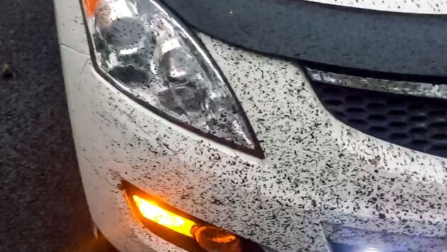Под "битумный дождь" попали как минимум 40 машин, которые ехали по трассе Екатеринбург-Челябинск. Как рассказали очевидцы в социальных сетях, инцидент произошел по вине дорожников, ремонтирующих трассу. "Спецавтомобиль двигался по обочине навстречу потоку с включенным распылителем, - написал один из пользователей "Вконтакте". - Напор гудрона бил фонтаном и обливал всех, кто ехал в направлении Челябинска. Фонтан был такой силы, что заливал по крышу даже крупные грузовики. Водители сразу останавливались, потому продолжать движение дальше было невозможно". Позже на место происшествия прибыли сотрудники ГИБДД, а водитель спецавтомобиля попытался оправдаться, заявив, что не заметил ничего необычного. По словам пострадавших автомобилистов, инспекторы даже не стали составлять схемы, а раздали бланки для объяснений. Спустя несколько часов на участок прибыл представитель подрядчика, который выполнял дорожные работы: он предложил пострадавшим возместить затраты на мойку на сумму 2 тыс. рублей. Фото, видео: inburg.ru