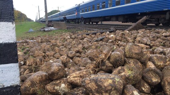Поезд сбил грузовик с корнеплодами под Барановичами