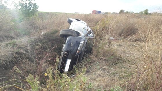На трассе в Северском районе перевернулся автомобиль Ford