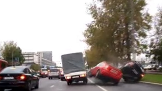 Водитель Mitsubishi Lancer Evolution устроил гоночный заезд на оживленной дороге. В начале ролика он находился в крайней левой полосе, а в конце - в противоположной части дороги и не в самом завидном положении. Большая скорость и резкое перестроение сыграли злую шутку с хозяином спорткара, которого лихо подсек владелец Volvo S40. В итоге, пострадали сразу несколько машин. Никто не ожидал такого окончания заезда.
