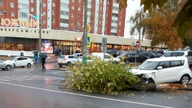 У пензенского ТЦ автоледи на иномарке снесла дерево