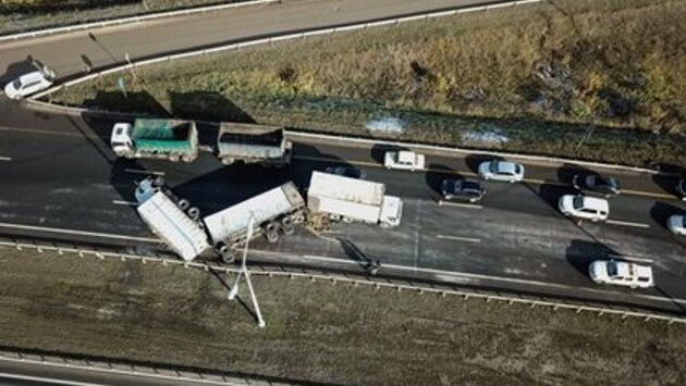 Фура с арбузами перевернулась на трассе М4 под Москвой вблизи Домодедово. Грузовой автомобиль ехал в сторону столицы, он опрокинулся в 15 километрах от МКАД. Об этом в воскресенье, 22 октября, сообщает агентство городских новостей «Москва». Оно опубликовало видео с места ДТП. На кадрах видно, что фура перегородила две полосы движения из трех. Причины аварии пока не уточняются.