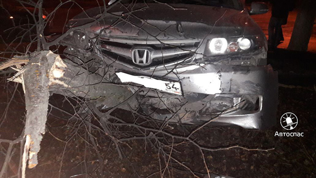 Дерево стало жертвой ночного ДТП в Новосибирске
