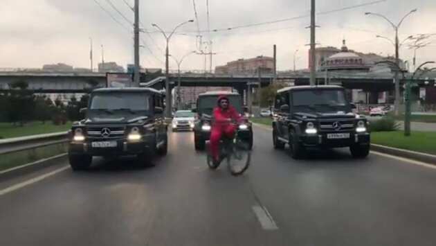 В Краснодаре велосипедист в сопровождении трех внедорожников Mercedes Gelandewagen перекрыл проезжую часть одной из улиц. Соответствующий видеоролик появился в пятницу в инстаграме. На короткой видеозаписи, выложенной пользователем shiko_azmani, велосипедист днем неспешно едет по одной из оживленных улиц. Сзади и по бокам его "прикрывают" три внедорожника, которые сдерживают поток автомобилей позади велосипедиста. Подписчики одобрительно прокомментировали заезд, реакции ГИБДД на видеоролик пока нет.