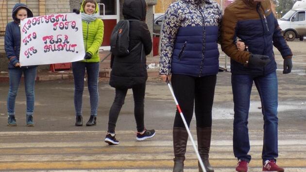 В Кинель-Черкасском районе прошла акция «Внимание - особенный пешеход!». Активное участие в ней приняли учащиеся филиала Тольяттинского медицинского колледжа, где большинство студентов - незрячие и слабовидящие. Участники подготовили яркие плакаты с надписью «Пропусти того, кто тебя не видит!» и вышли к оживленному нерегулируемому пешеходному переходу. Фото: Управление ГИБДД ГУ МВД России по Самарской области В ходе акции сотрудники ГИБДД разъясняли водителям пункт ПДД, обязывающий уделять особое внимание на дорогах слепым пешеходам, которые подают сигнал белой тростью. В свою очередь, слабовидящие студенты в сопровождении волонтеров раздавали тематические листовки и памятки, предлагая ощутить себя на их месте и пройти с завязанными глазами через дорогу. Жители села положительно отнеслись к акции, выразив общее мнение, что такие мероприятия помогают дисциплинировать всех участников дорожного движения.