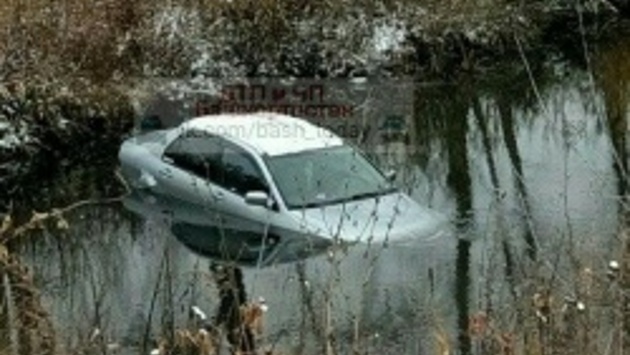 В Башкортостане автомобиль съехал в реку со скользкой дороги