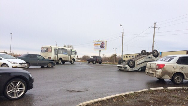 В результате ДТП LADA Largus перевернулась на крышу. О пострадавших не сообщается, на месте аварии работали сотрудники скорой помощи. ДТП произошло сегодня, 29 октября, на кольце Шарлыкского шоссе в Оренбурге возле торгового центра «Армада». Автомобиль перевернулся ближе к железнодорожному переезду. Об этом свидетельствуют фотографии, которые были опубликованы очевидцами в социальных сетях. Вторым участником ДТП стал ВАЗ-2110. У «Десятки» повреждена передняя часть автомобиля.
