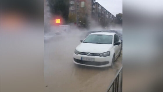 Гейзер кипятка хлещет по машинам на оживленной трассе: видео
