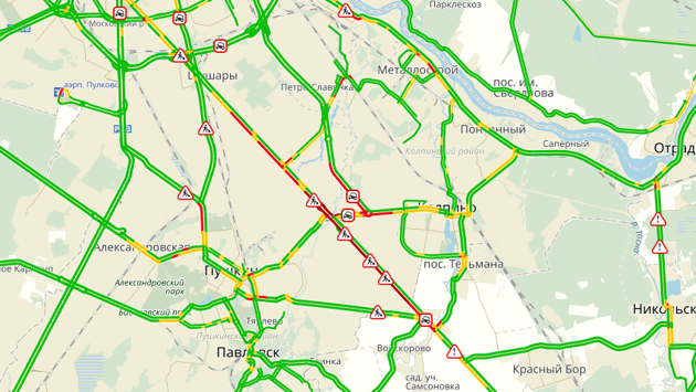 Московское шоссе в сторону Ленобласти встало в гигантскую пробку