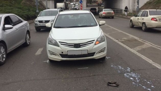 В Краснодаре пешеход перелез через дорожное ограждение и кинулся под колеса молодому водителю